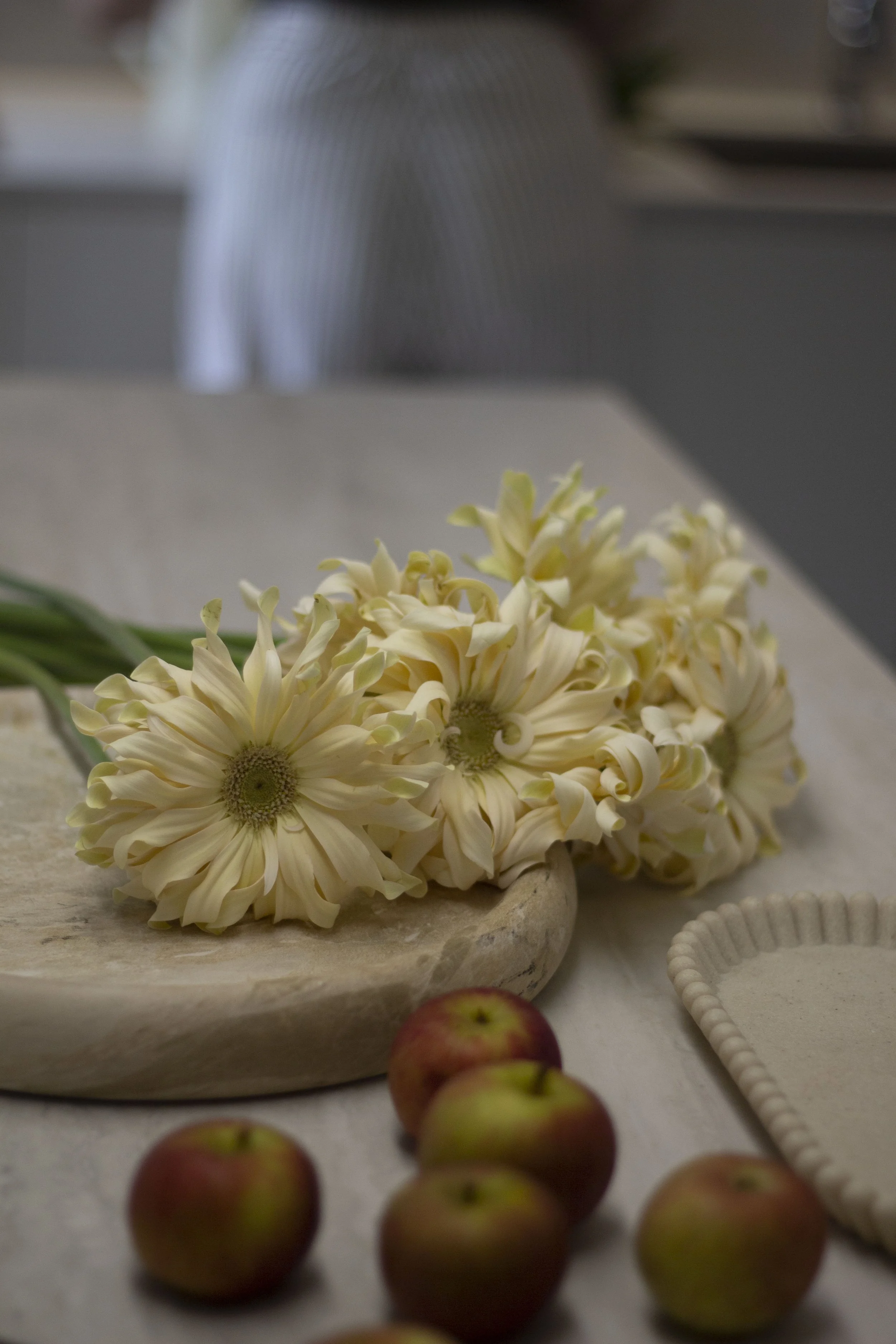 A soothing palette of muted neutrals, layered textures, and organic curves creates a sense of calm, while bold accents like the green-hued alcove and checked flooring infuse personality without overwhelming the space.